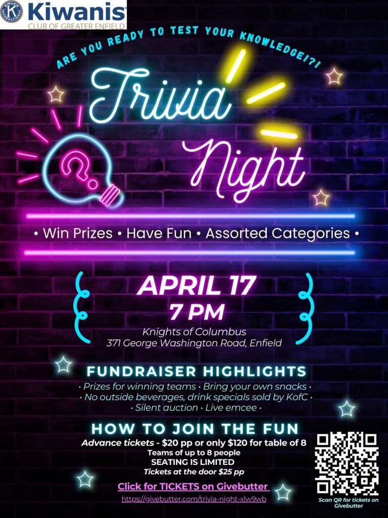 Join us on April 17 @ 7pm for a fun evening while supporting our service to the community! Click https://givebutter.com/trivia-night-xlw9wb for tickets. Seating is limited so please get your tickets early!